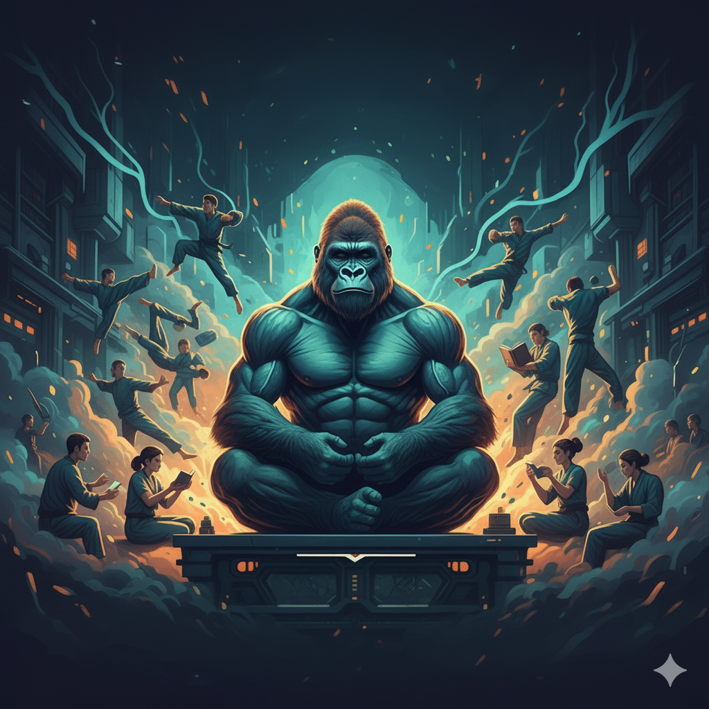 “Kandang Gorilla bukan sekadar tempat latihan beladiri. Kami hadir sebagai ruang untuk bertumbuh, tempat di mana energi, pikiran, dan semangatmu diasah agar menjadi pribadi yang tangguh, cerdas, sekaligus kreatif.”